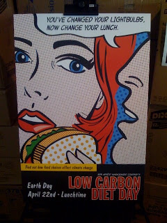 Sam Corcos just sent me this flier over at Pitzer College. (I generally avoid Pitzer after its plans to ban Coca-cola.) The flier is part of a campaign intended for "low carbon diet day," which just so happen to coincide with Earth Day. I first mentioned this campaign several months ago in a piece entitled "Bon Appetit Favors Food Protectionism?"